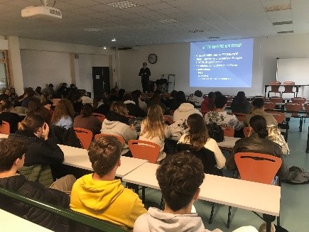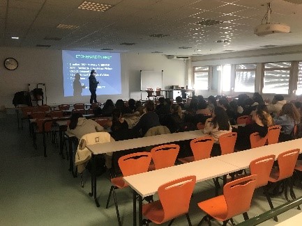 Lors de cette semaine de l’industrie, la société Etchepare Menuiserie de St Palais (64), par la voie de son gérant Monsieur Philippe Croci est venu à la rencontre des classes de 2 MAMA, 1ère TFBMA et Terminale ERA pour faire l’inventaire des compétences souhaitées dans cette filière de l’agencement de l’espace, sur les fabrications de mobiliers, et également sur la pose sur chantier. Un échange entre les apprenants et le chef d’entreprise a eu lieu pendant et après la conférence.